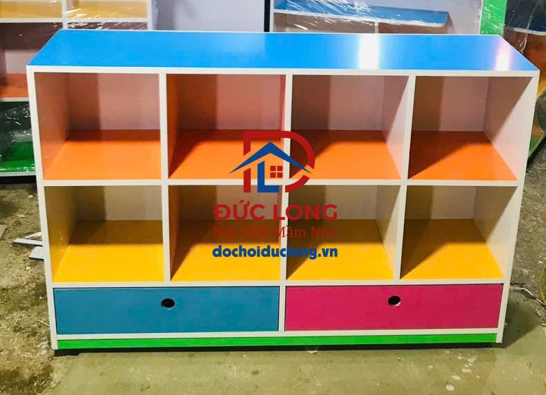 Màu sắc rực rỡ, sơn an toàn, ván gỗ MDF công nghiệp dày dặn chắc chắn, bề mặt mịn, hàng chắc nặng kết cấu vững chãi. Có bánh xe di chuyển