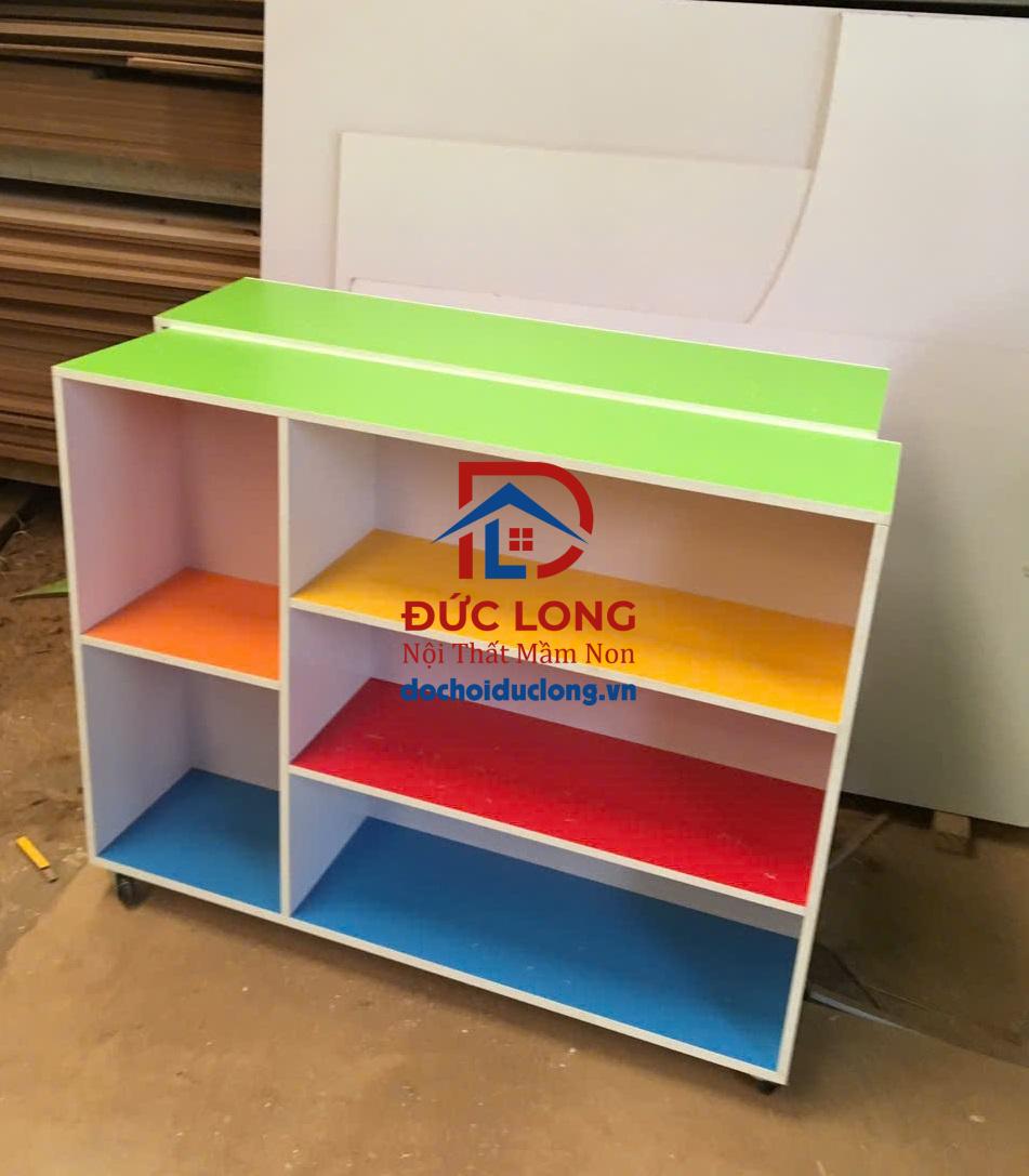Màu sắc rực rỡ, sơn an toàn, ván gỗ MDF công nghiệp dày dặn chắc chắn, bề mặt mịn, hàng chắc nặng kết cấu vững chãi. Có bánh xe di chuyển