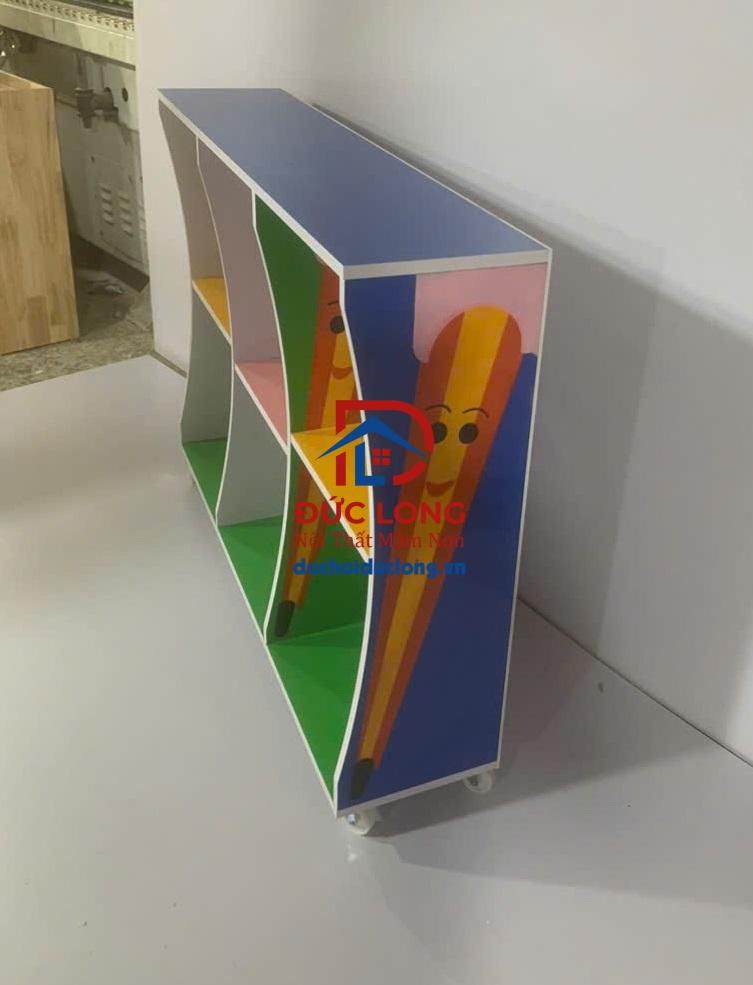 Màu sắc rực rỡ, sơn an toàn, ván gỗ MDF công nghiệp dày dặn chắc chắn, bề mặt mịn, hàng chắc nặng kết cấu vững chãi. Có bánh xe di chuyển