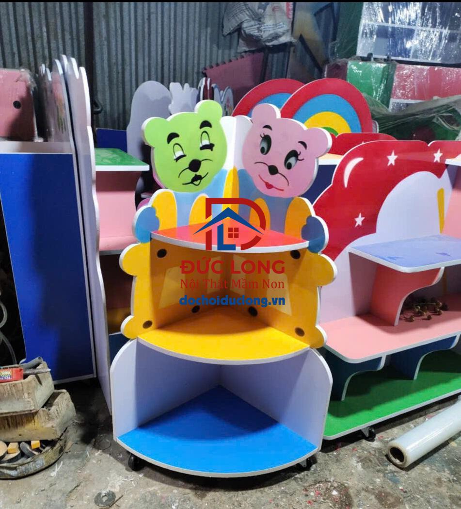 Màu sắc rực rỡ, sơn an toàn, ván gỗ MDF công nghiệp dày dặn chắc chắn, bề mặt mịn, hàng chắc nặng kết cấu vững chãi. Có bánh xe di chuyển